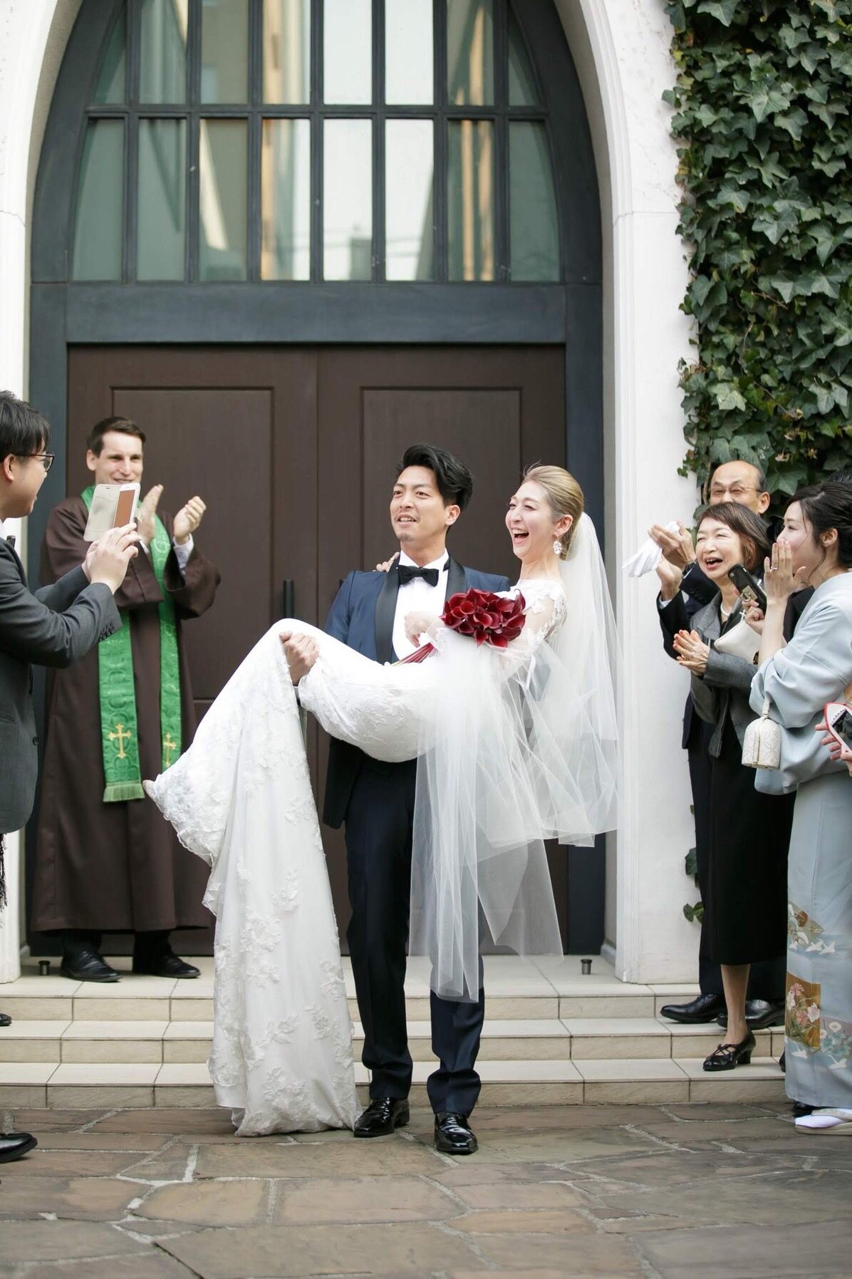 結婚式のフラワーシャワーでお姫様抱っこをしてもらうアイデア Marry マリー